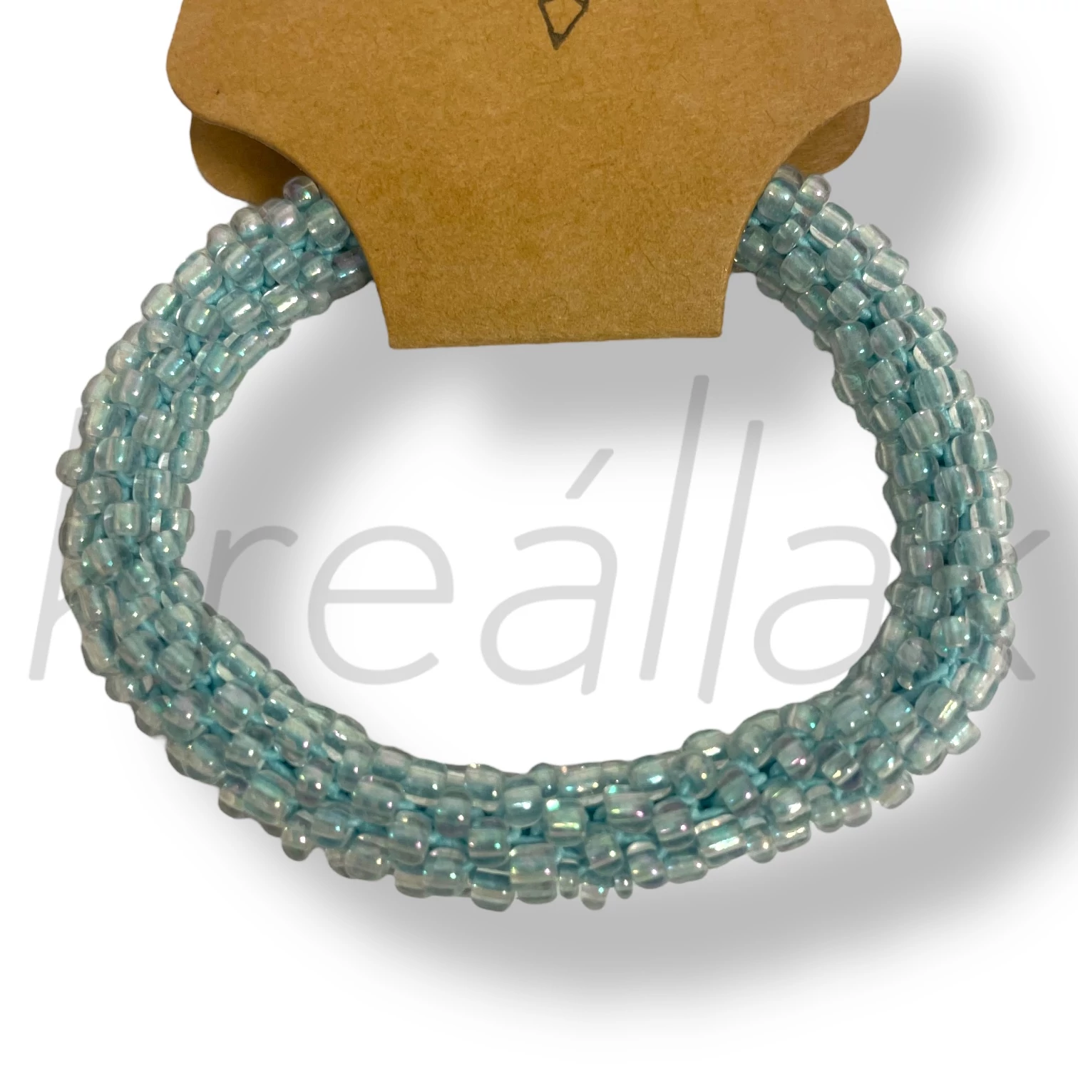 Apró gyöngyös türkizkék átlátszó karkötő