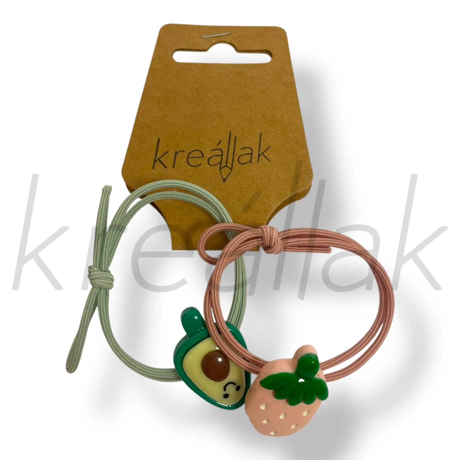 A vidám avokádó,eper hajgumi kitűnő kiegészítőnk lehet a nyári melegben. Rugalmas kialakítása miatt , akár karkötőnek is használhatjuk.