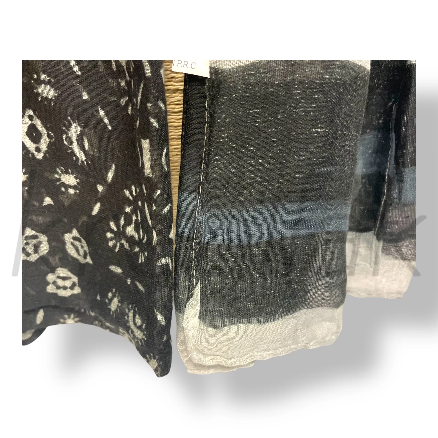 Fekete virág-csíkos sál