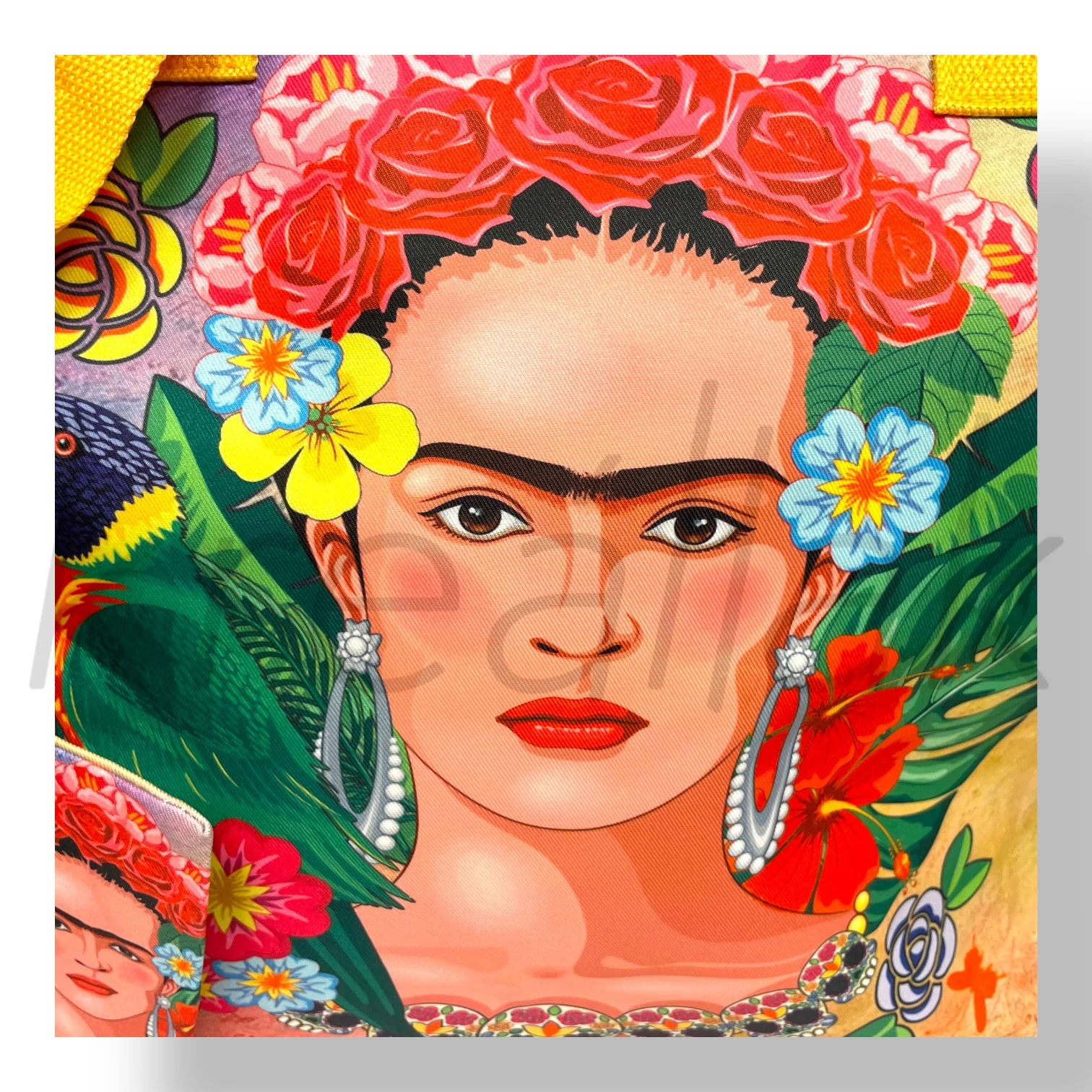 Egy stílusos kiegészítő a strandoláshoz! A mintás strandtáska a nyári szezonban nélkülözhetetlen segítőtárs.Frida Kahlo, teljes nevén: Magdalena Carmen Frida Kahlo y Calderón mexikói festőművésznő, közéleti szereplő, a 20. századi Mexikó egyik legemblematikusabb alakja. Minden elfér ami a strandoláshoz és az uzsonnához szükséges,belül egy belső zseb található, zipzárral zárható a táska. Kiegészítőként egy kis pénztárca is jár táskához.Praktikus kiegészítő egész nyáron.
