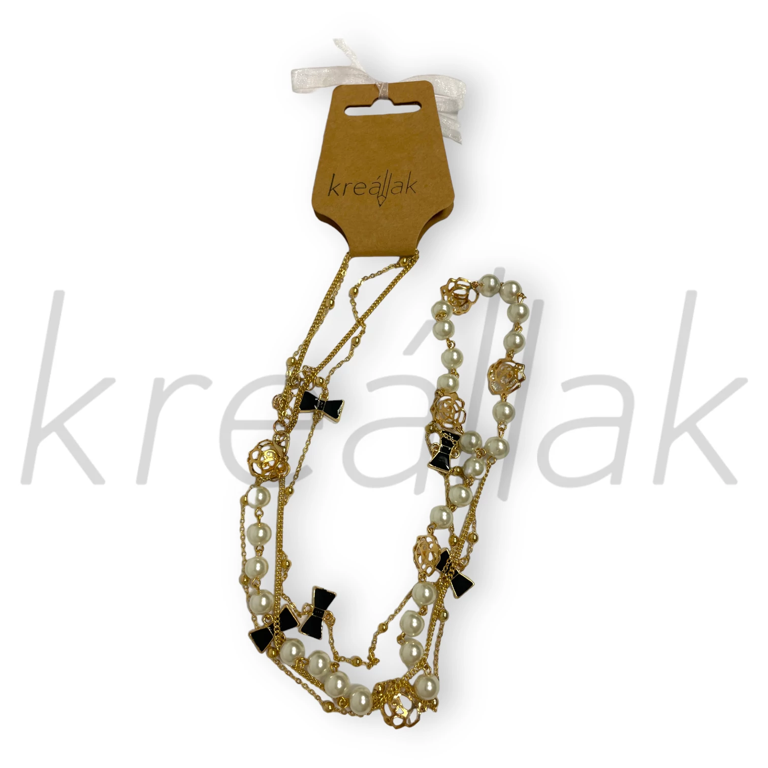 Ragyogj, mint egy csillag ezzel a gyöngyös masnis ynaklánc arany darabbal! Kifinomult vonalai és részletgazdag kidolgozása minden tekintetet magára vonz. Akár egy romantikus vacsorán, akár egy elegáns eseményen viseled, biztos lehetsz benne, hogy különlegessé teszi a megjelenésed. Ne csak kiegészítőként gondolj rá – ez a nyaklánc a személyiséged tükre, egy ékszer, amely mesél rólad!