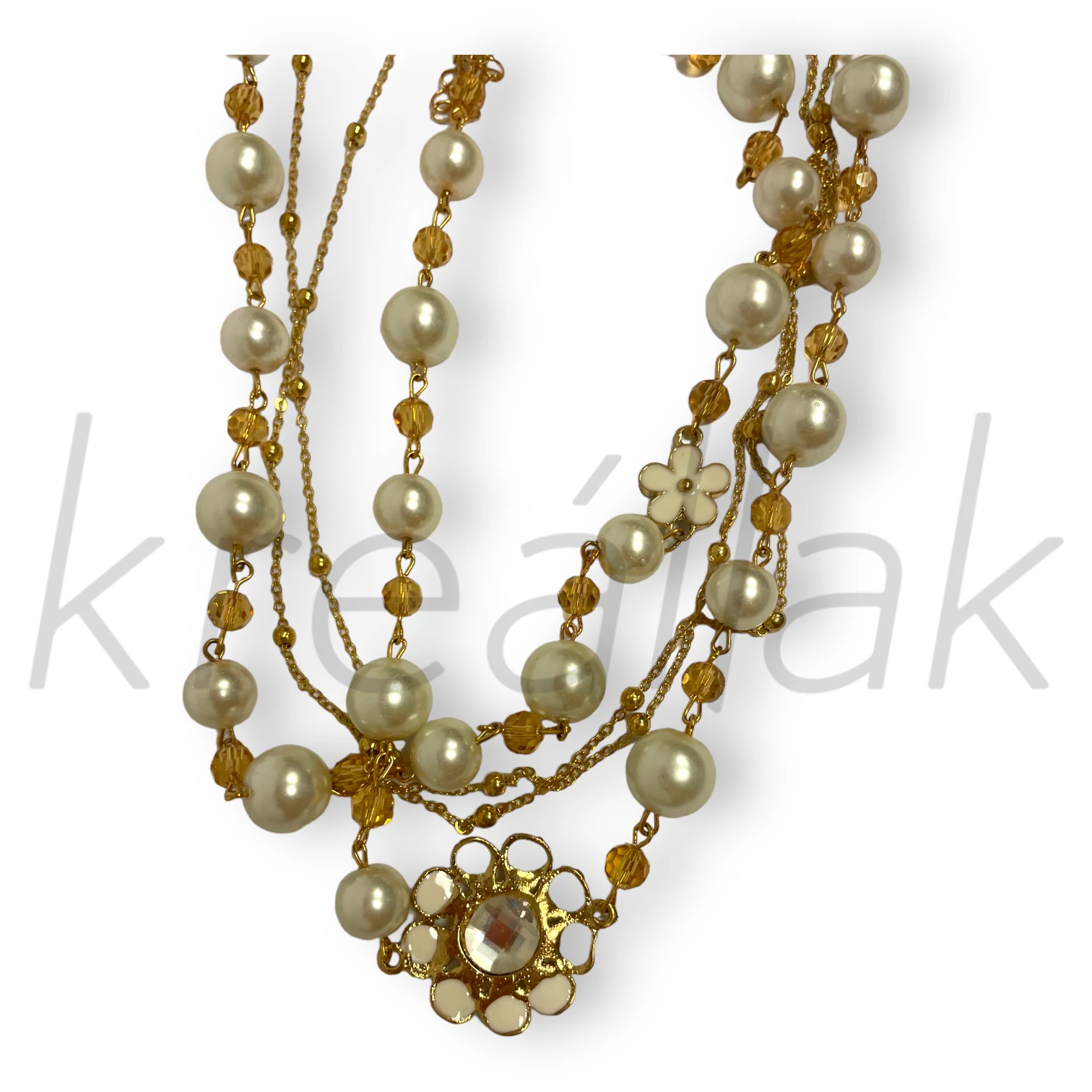 Ragyogj, mint egy csillag ezzel a gyöngyös,virágos arany nyaklánc darabbal! Kifinomult vonalai és részletgazdag kidolgozása minden tekintetet magára vonz. Akár egy romantikus vacsorán, akár egy elegáns eseményen viseled, biztos lehetsz benne, hogy különlegessé teszi a megjelenésed. Ne csak kiegészítőként gondolj rá – ez a nyaklánc a személyiséged tükre, egy ékszer, amely mesél rólad!