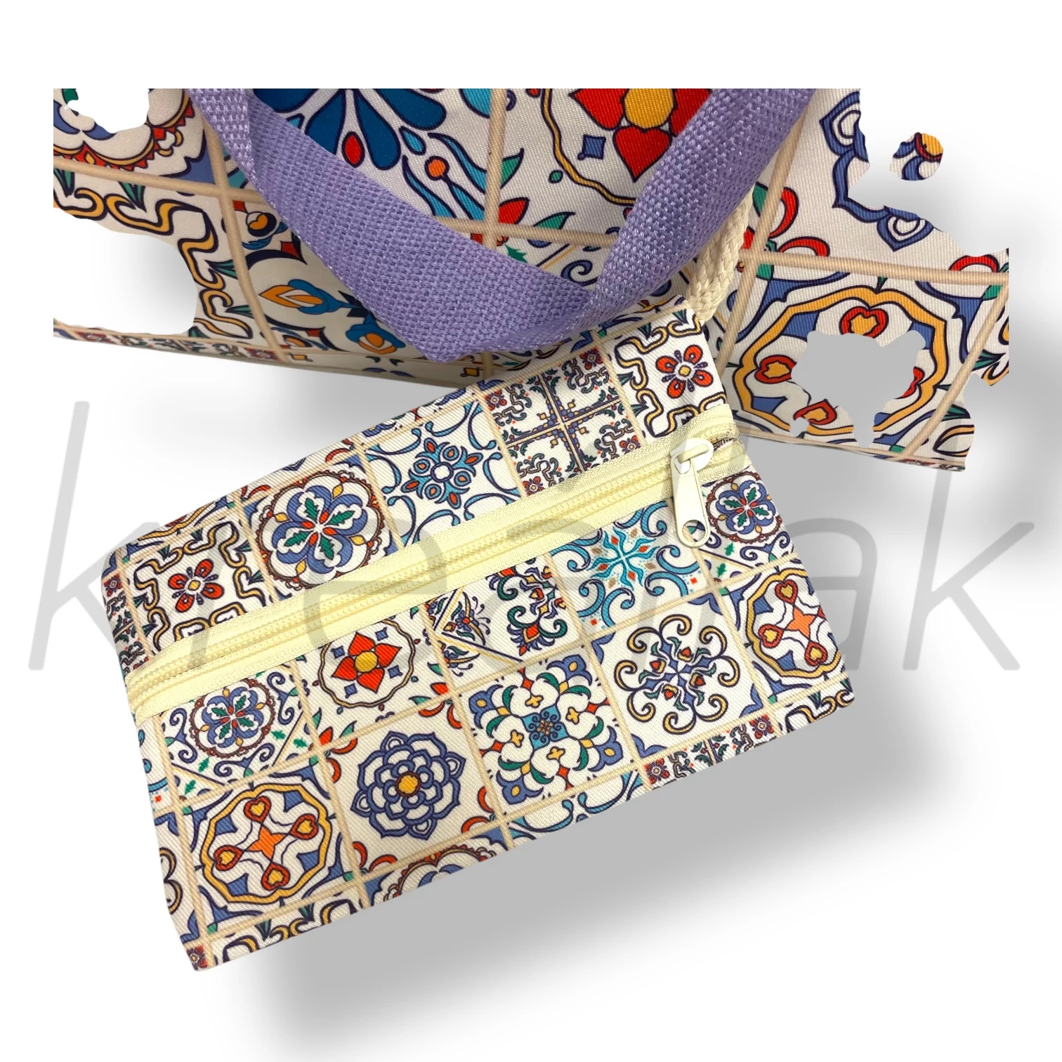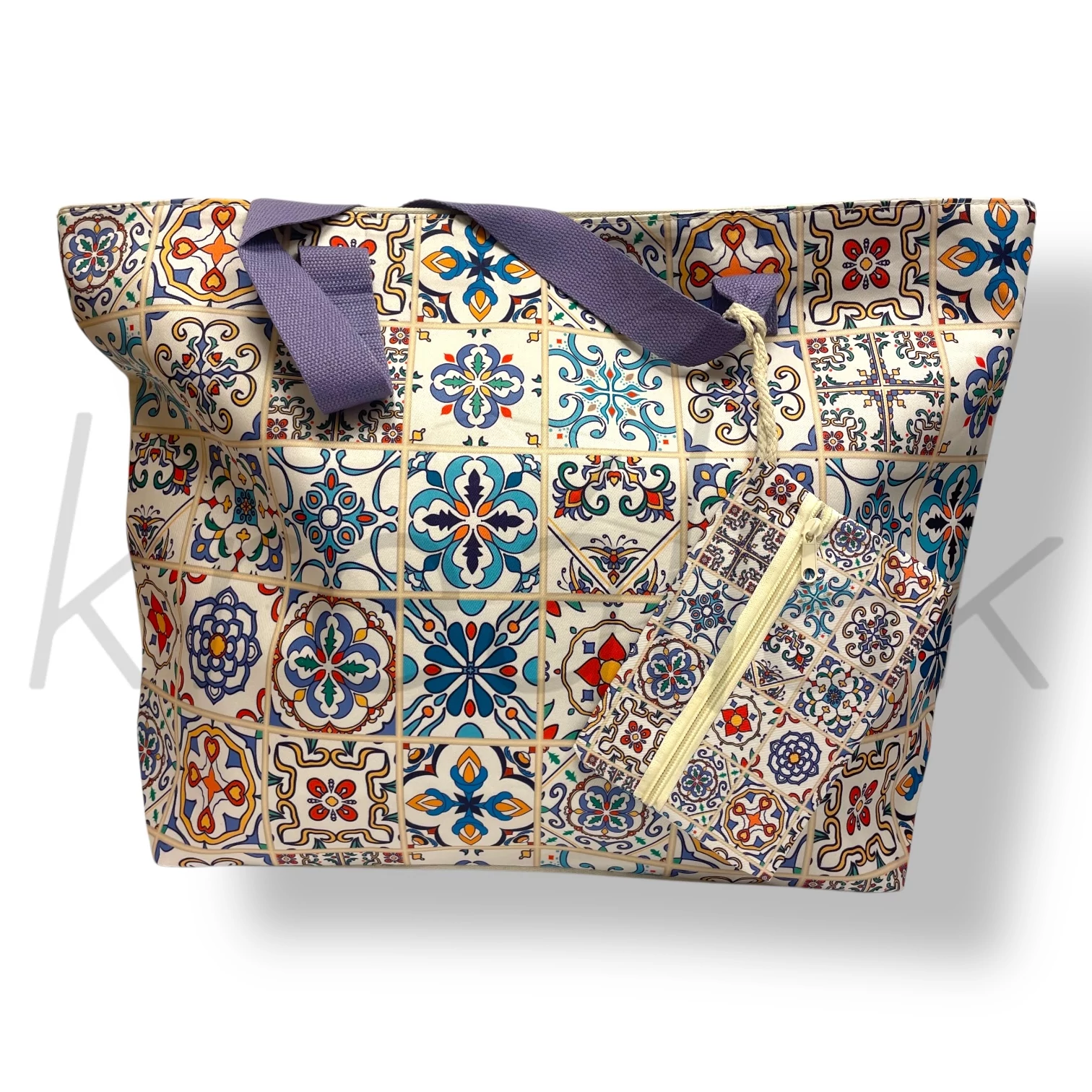 Egy stílusos kiegészítő a strandoláshoz! A bohém mintás strandtáska a nyári szezonban nélkülözhetetlen segítőtárs.A táska kiegészítője egy ugyanolyan mintájú,zipzáras kis pénztárca. Minden elfér ami a strandoláshoz és az uzsonnához szükséges,belül egy belső zseb található, zipzárral zárható a táska. Praktikus kiegészítő egész nyáron.