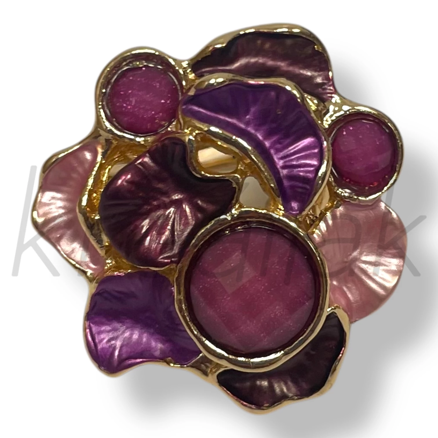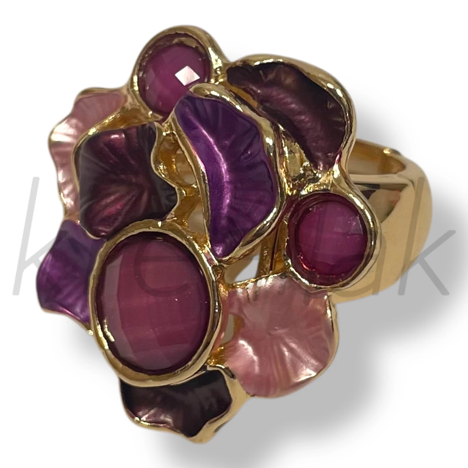 A lila virág gyűrű , arany alapon egy igazán stílusos kiegészítő minden korosztálynak.Ha valami különlegeset szeretnél , egyedit akkor ez remek választás lesz hétköznapokra és alkalomra egyaránt.
