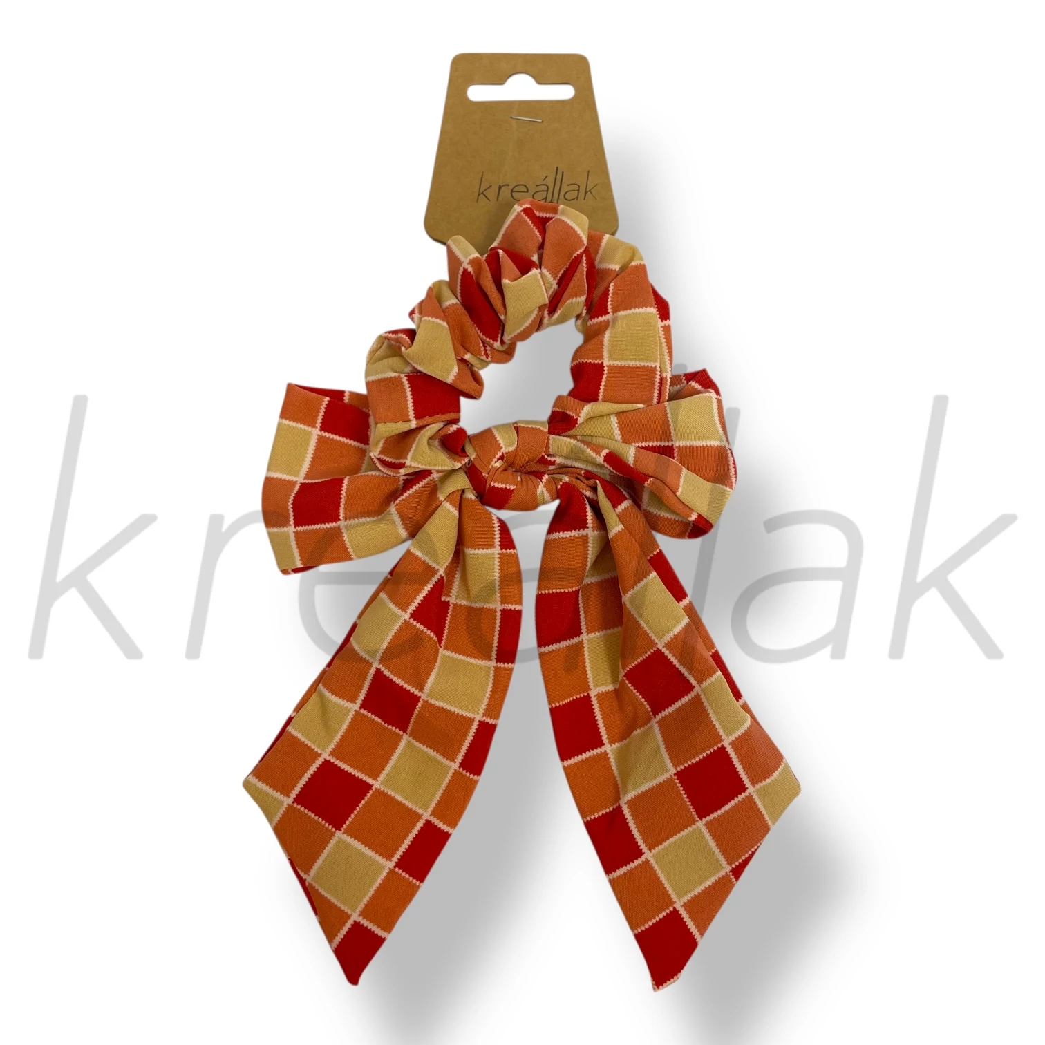 Piros-bézs kockás masni hajgumi