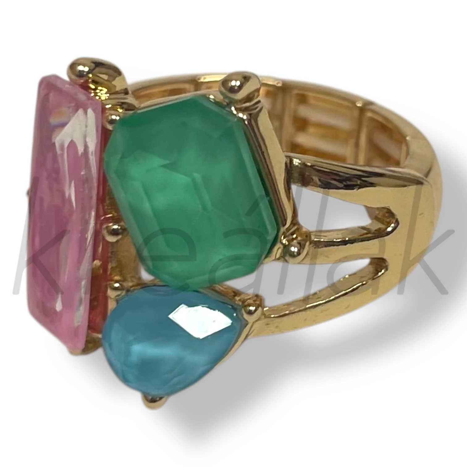 Rózsaszín nagy köves gyűrű , arany alapon egy igazán stílusos kiegészítő minden korosztálynak.Ha valami különlegeset szeretnél , egyedit akkor ez remek választás lesz hétköznapokra és alkalomra egyaránt.