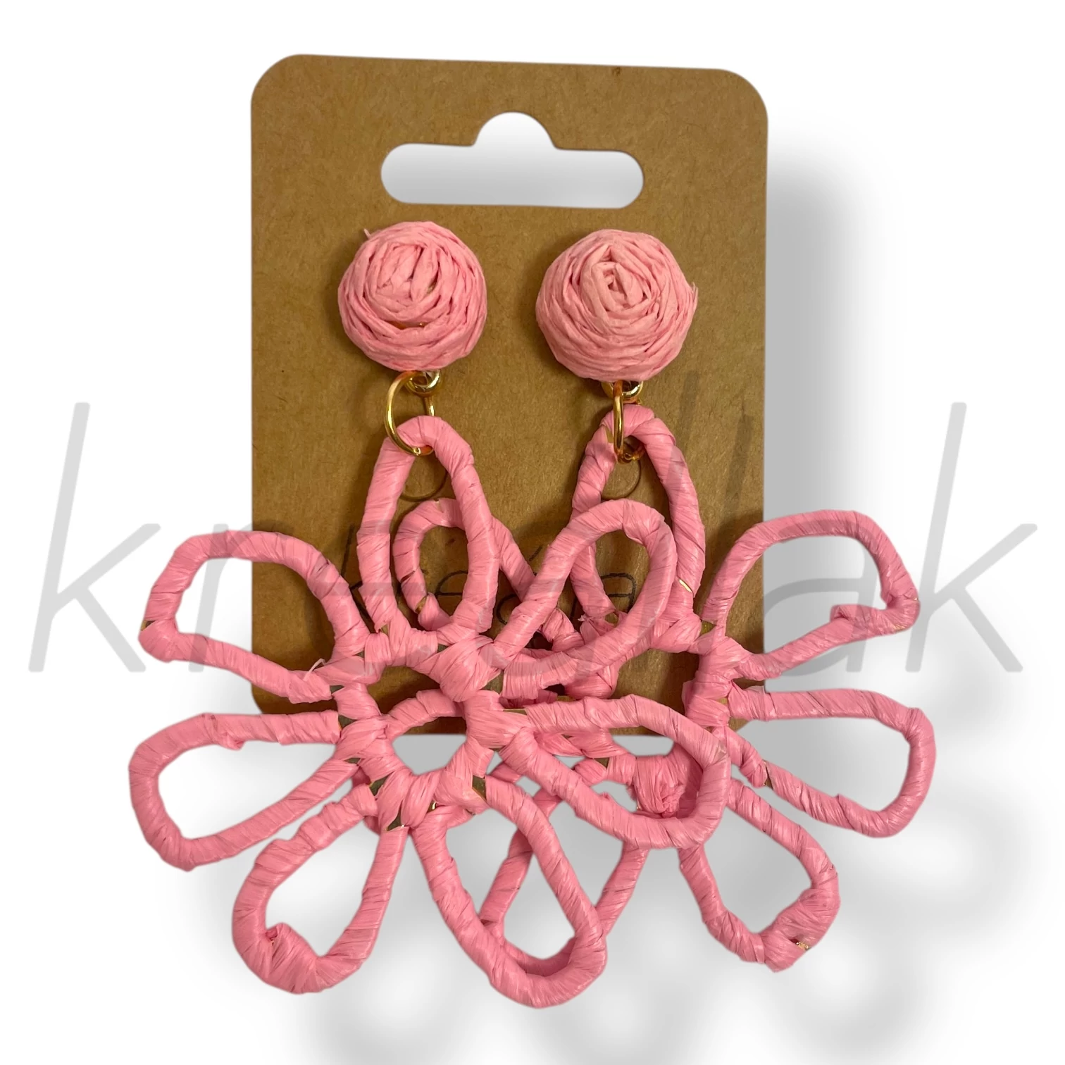 Rózsaszín szirom szalma fülbevaló