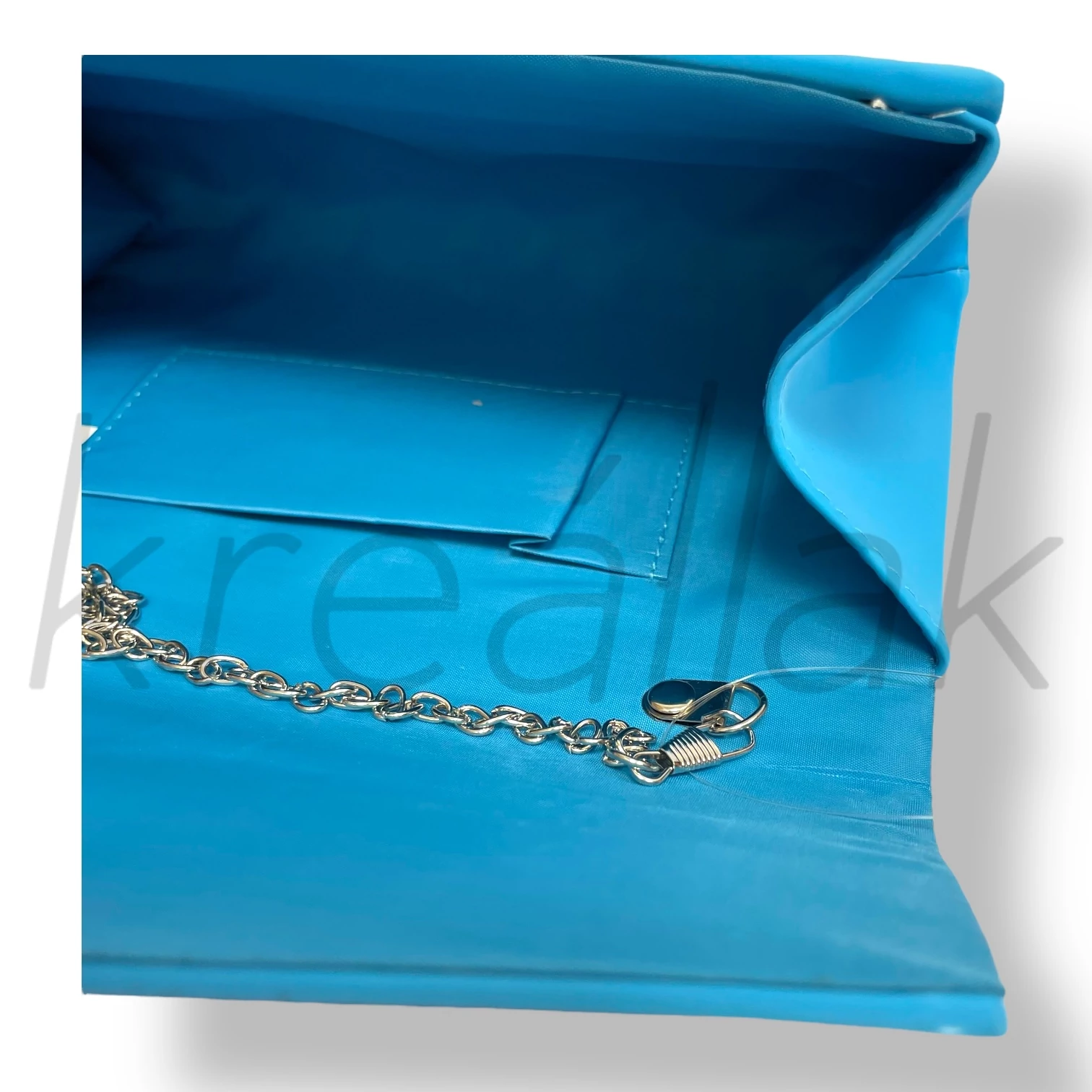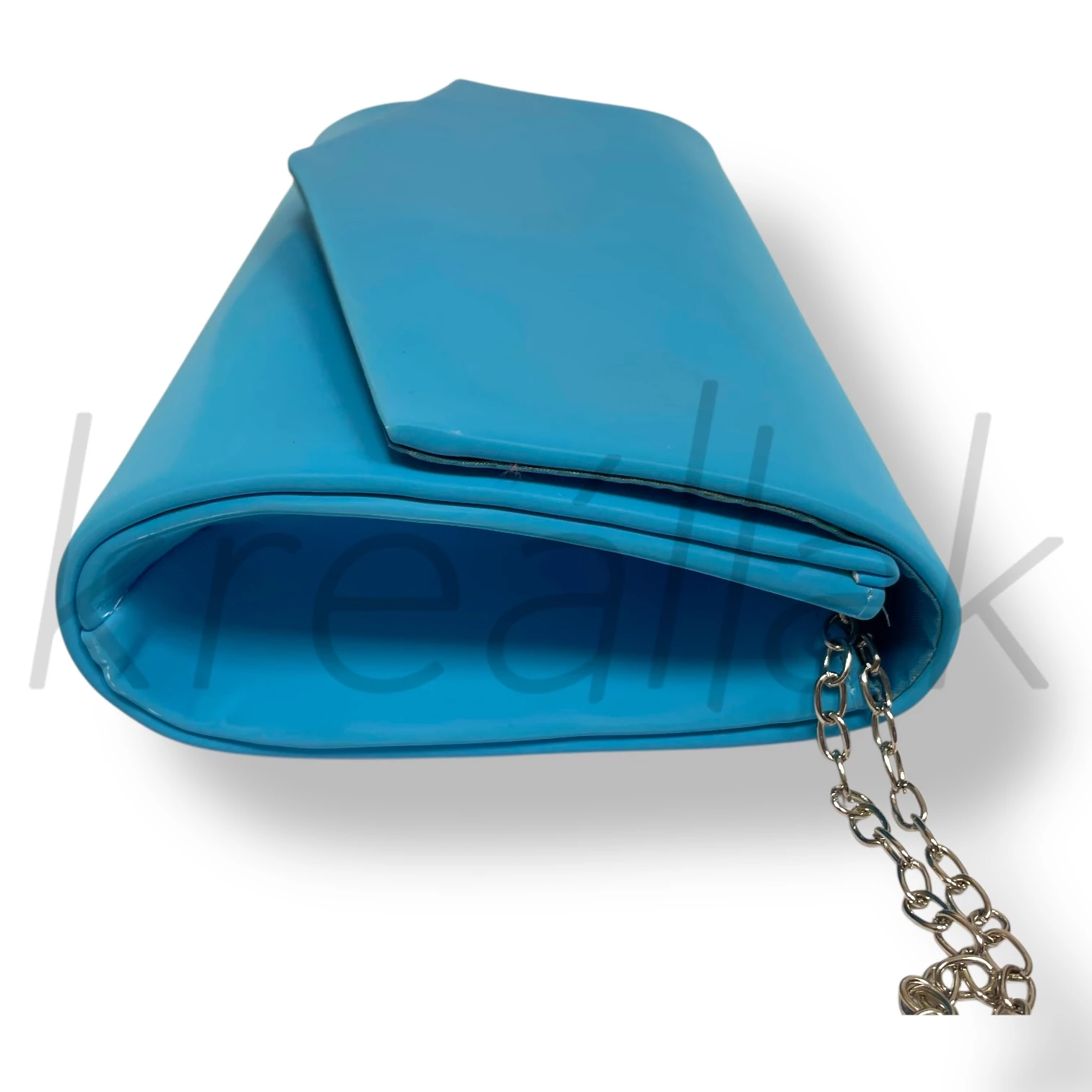 Az türkízkék lakk,alkalmi táska igazán jó választás alkalmakra. Fényes műbőr anyagai igazi alkalmi hangulatot ad. Feltűnő és trendi színével dobja fel megjelenésed. A táskának vékony láncos pántja van , belül egy kis zsebbel. Ha szeretnél kitűnni egyedi darabbal,akkor ez táska a tökéletes választás.